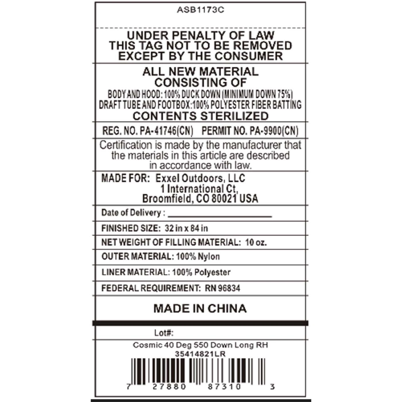 - Insulation: 550FP Duck Down