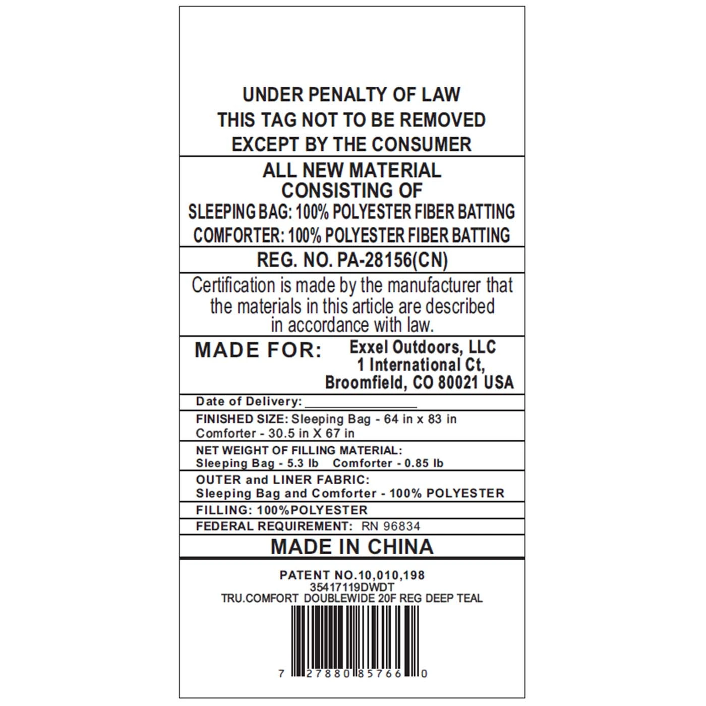 - Control your temperature with Comfort-Tuck Zipper System